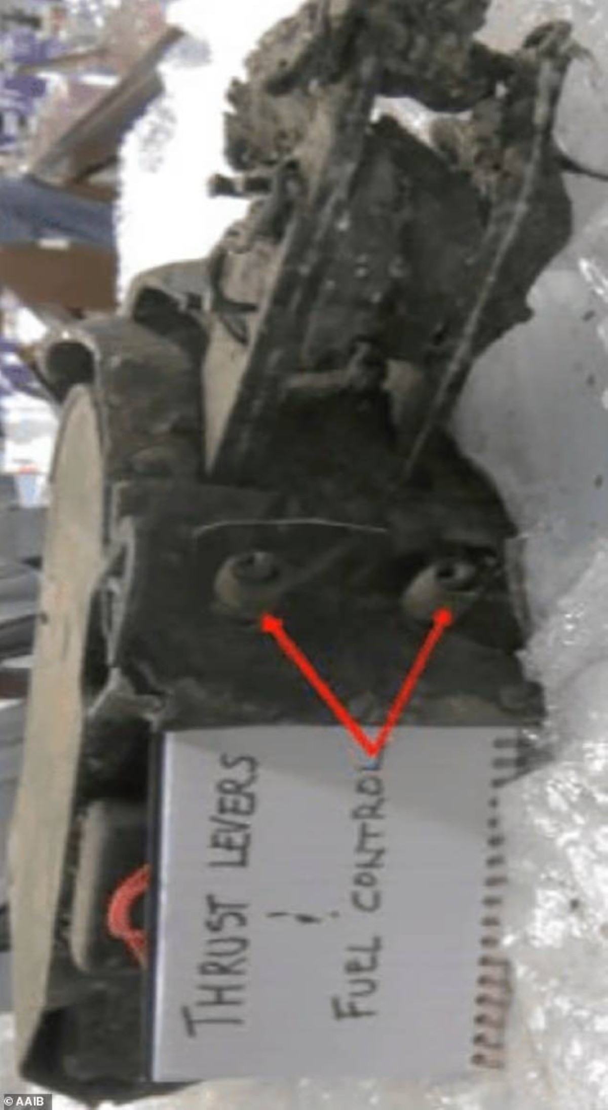 سلط التقرير المكون من 15 صفحة الصادر عن مكتب التحقيق في حوادث الطائرات الهندي الضوء على مفتاحي الوقود الصغيرين اللذين يقعان أسفل ذراعي الدفع في قمرة القيادة.