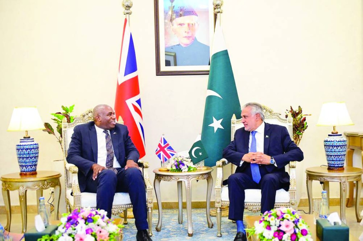 وزير الخارجية الباكستاني إسحاق دار ونظيره البريطاني ديفيد لامي خلال محادثات في إسلام آباد
