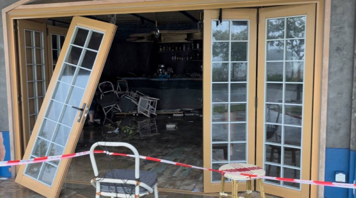 وأظهر مقطع فيديو تم تداوله على مواقع التواصل الاجتماعي، تحطم أبواب زجاجية لفندق على الساحل الجنوبي للمنطقة بفعل الأمواج والمياه التي غمرت قاعة الاستقبال.
