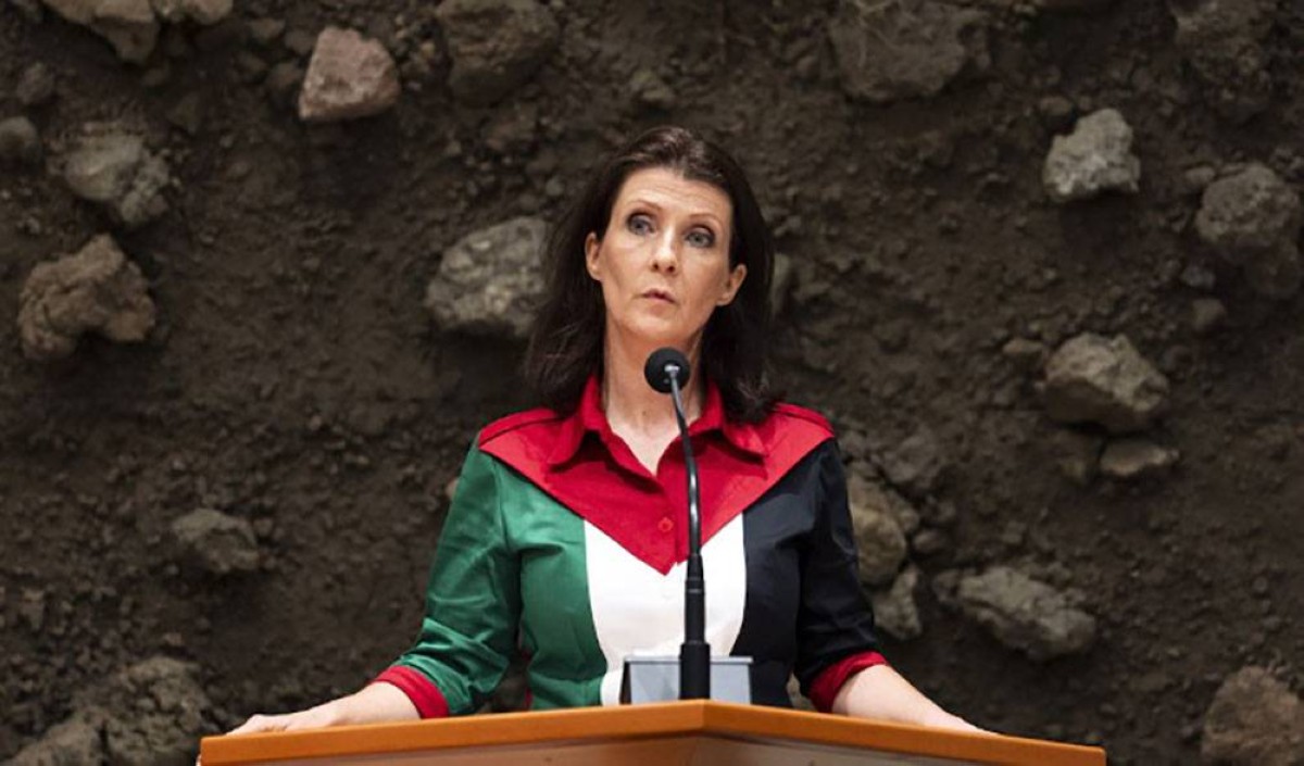 تضامناً مع غزة.. نائبة هولندية ترتدي ألوان علم فلسطين في الجلسة البرلمانية