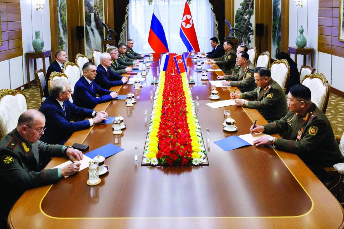جانب من محادثات بين الوفدين العسكريين الروسي والكوري الشمالي في بيونغ يانغ