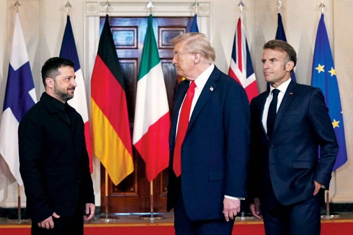 ترامب وزيلينسكي وماكرون عقب اجتماع في البيت الأبيض