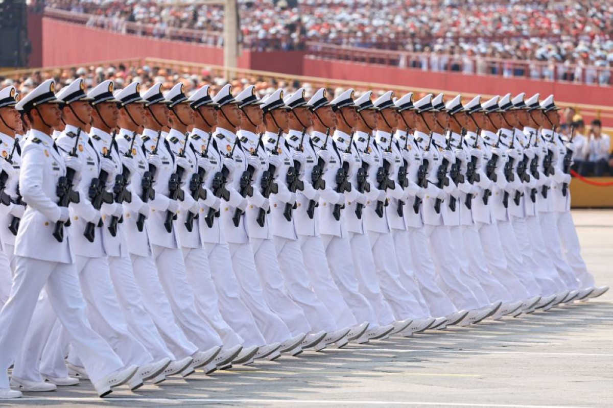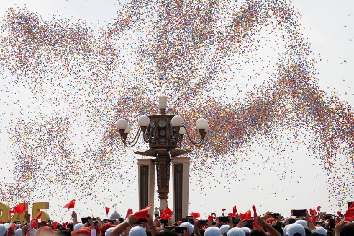 وقال شي أمام حشد يضم أكثر من 50 ألف شخص بميدان تيانانمن "اليوم، تواجه البشرية خيار السلام أو الحرب، الحوار أو المواجهة، فوز الجميع أو خسارة الجميع"، مضيفا أن الشعب الصيني "يقف بحزم في الجانب الصحيح من التاريخ".