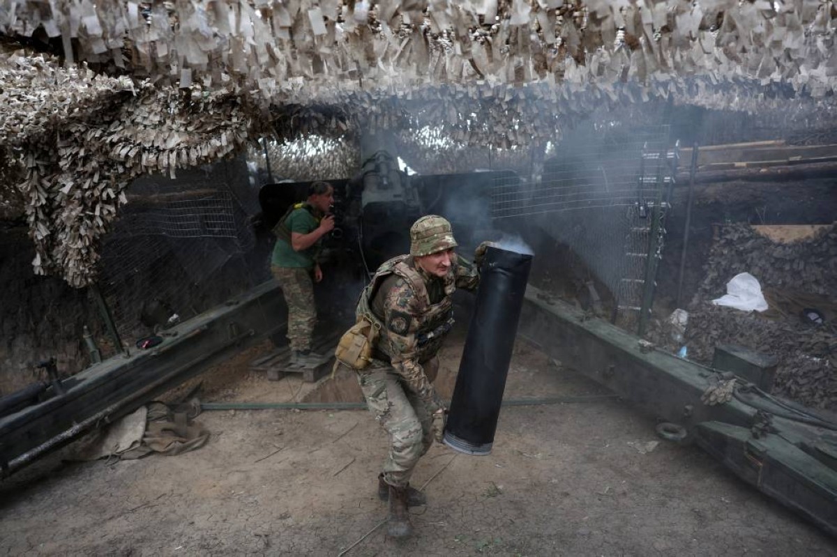 جنود أوكرانيون يطلقون نيران مدافعهم باتجاه مواقع للقوات الروسية في خاركيف
