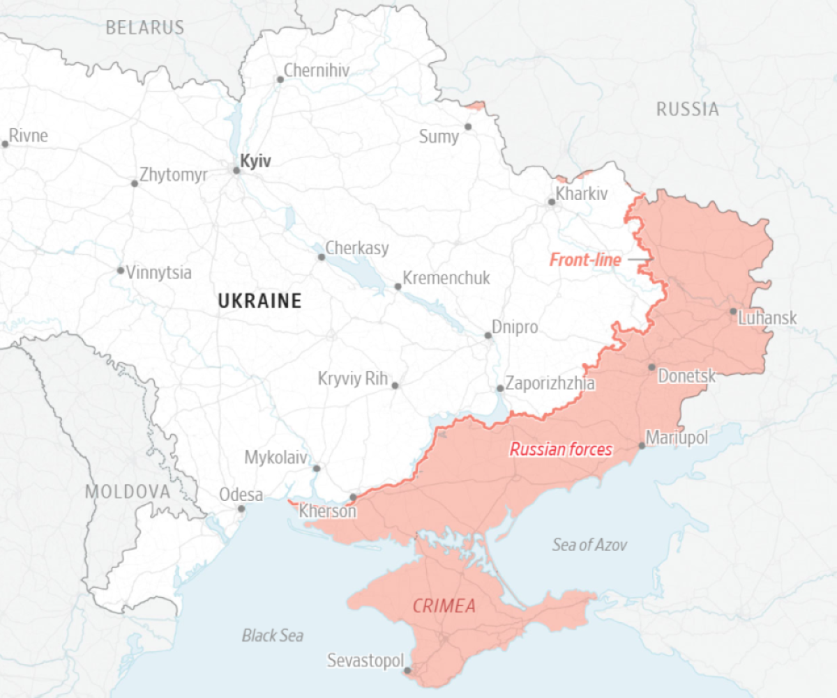 تعارض أوكرانيا بشدة فكرة الاعتراف القانوني بأي أراض أوكرانية على أنها روسية شأنها في ذلك شأن حلفائها الأوروبيين. ولكنها اعترفت ضمنياً بأنه من شبه المؤكد أنها ستضطر إلى قبول خسارة بعض الأراضي بحكم الأمر الواقع.