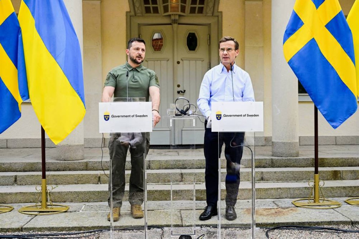 ويلتقي زيلينسكي ورئيس الوزراء السويدي أولف كريسترسون في مدينة لينكوبينغ، المقر العام لشركة "ساب" للصناعات الدفاعية التي تنتج طائرات "غريبن" المطاردة.