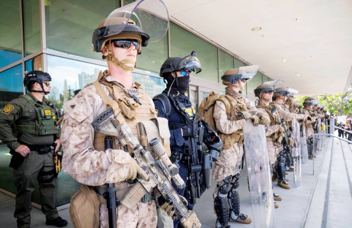 جنود مشاة البحرية الأمريكية خارج المبنى الفيدرالي في لوس أنجلوس