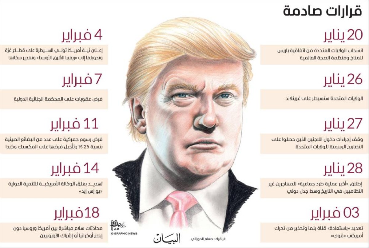 استهل الرئيس الأمريكي، دونالد ترامب، ولايته الثانية بسياسات حملت بصمته «الشعبوية»، مرتكزاً على أجندة صدامية بغية إعادة تشكيل المشهدين الداخلي والدولي، وهو ما غلّف سياساته منذ الشهر الأول بشكل واضح.