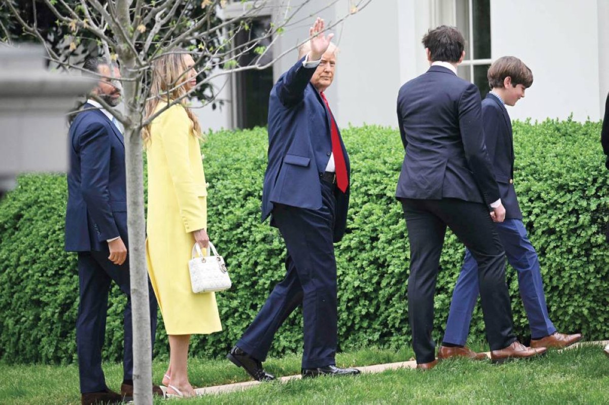 ترامب في طريقه للمكتب البيضاوي مع أفراد عائلته خلال احتفال عيد الفصح