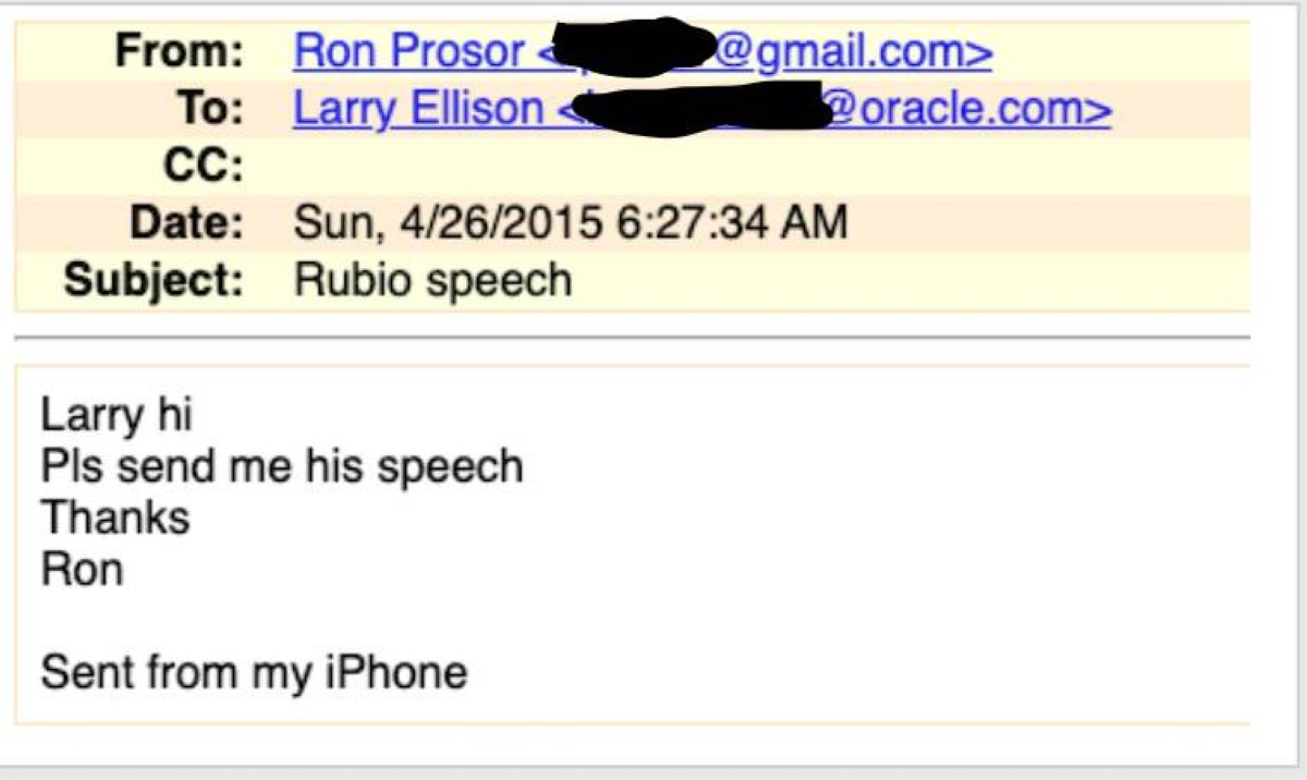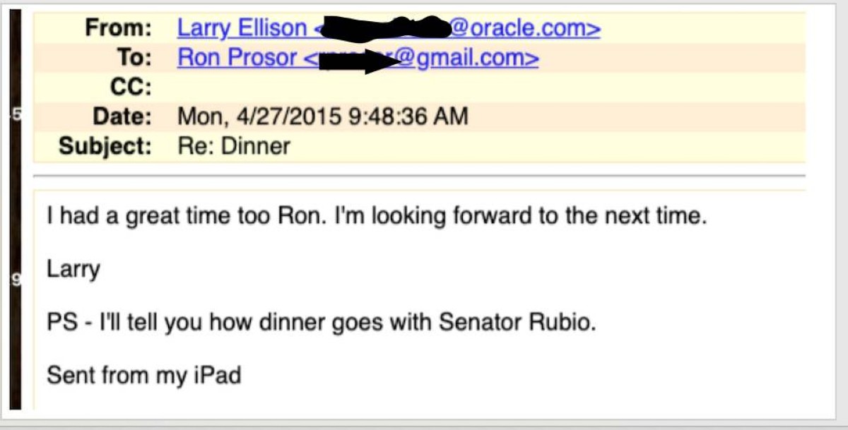 كما توضح المراسلات أن إليسون التقى شخصياً بورسور قبل أن يعقد لقاءً مباشراً مع روبيو، ثم تواصل معه بورسور للتأكد من تقييمه لموقف الأخير، فجاء رد إليسون مؤكداً أن روبيو سيكون "حليفاً قوياً لإسرائيل".