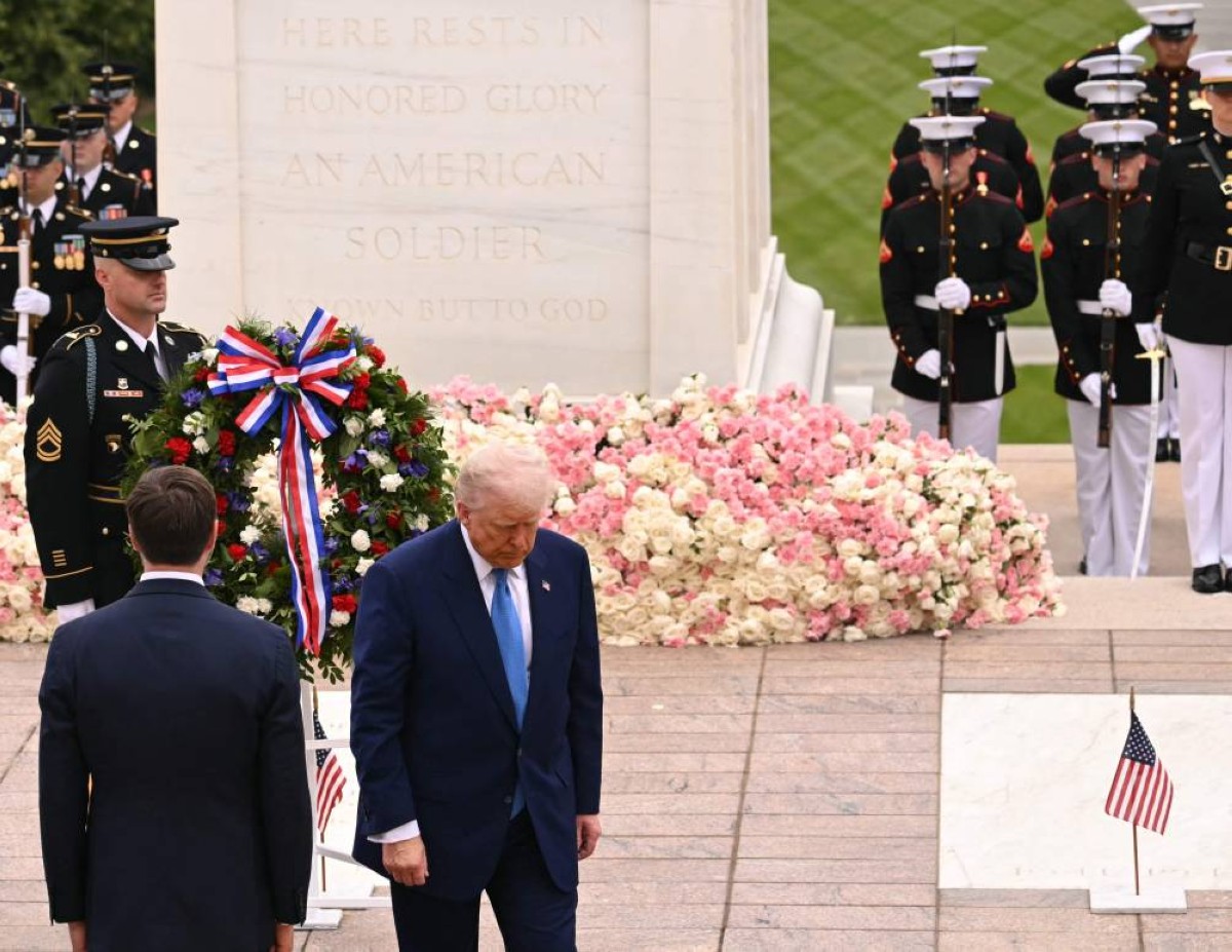 وضع ترامب اليوم الاثنين، إكليلا من الزهور على قبر الجندي المجهول، وهو تقليد حزين للرؤساء الأمريكيين. وتوقف الرئيس للحظات بعد وضع إكليل الزهور، ثم تراجع وقام بأداء التحية أثناء عزف "الموسيقى"، فيما انضم إليه نائب الرئيس جيه دي فانس ووزير الدفاع بيت هيجسيث.