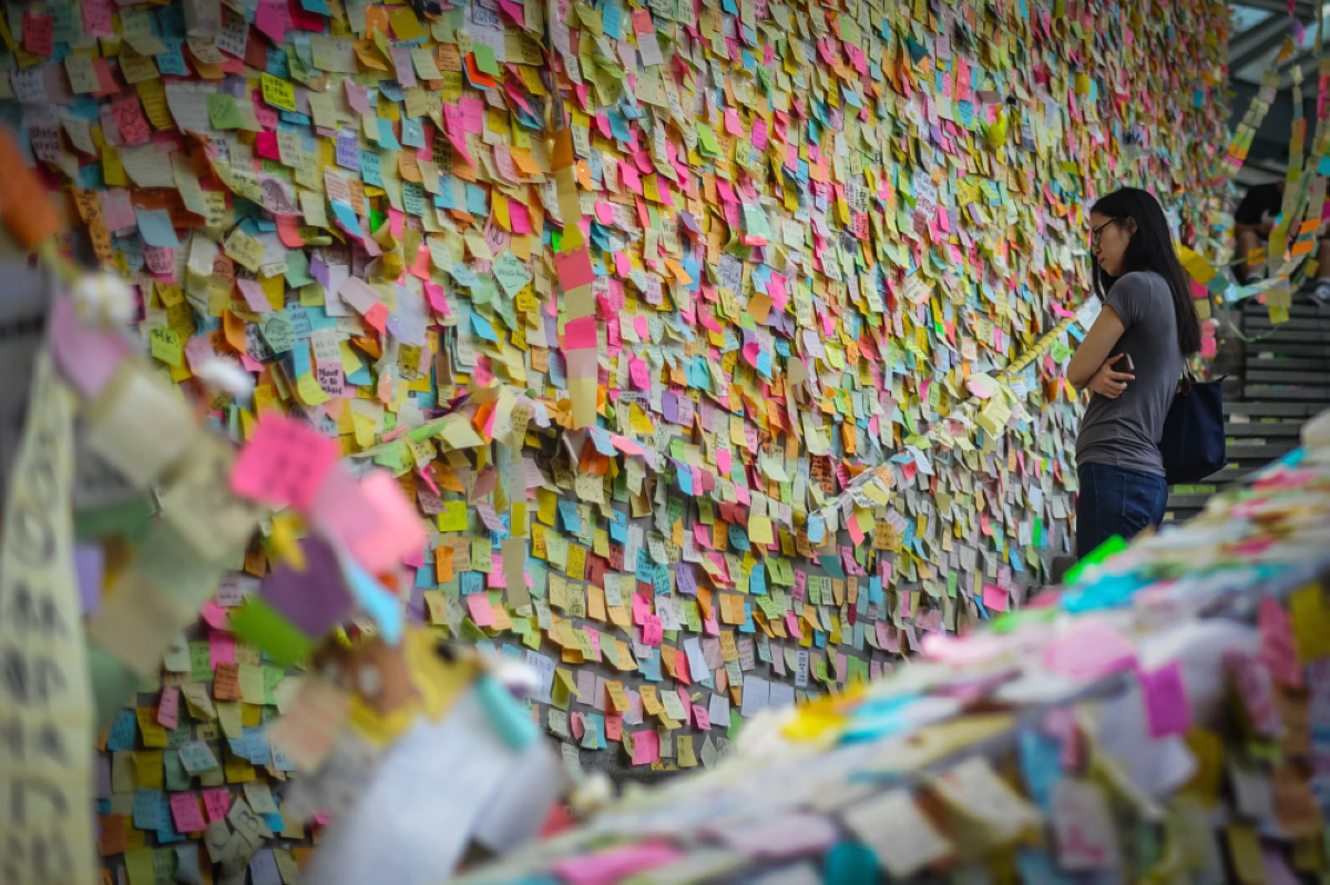 على هذه المربعات الصغيرة من الورق المتعدد الألوان، يمكن قراءة رسائل مختلفة بينها "دعونا نكون أكثر لطفاً"، أو "هل سيتم طردي؟"، أو "تخلصوا من ترامب"، أو "محكوم يُنتخب رئيساً".