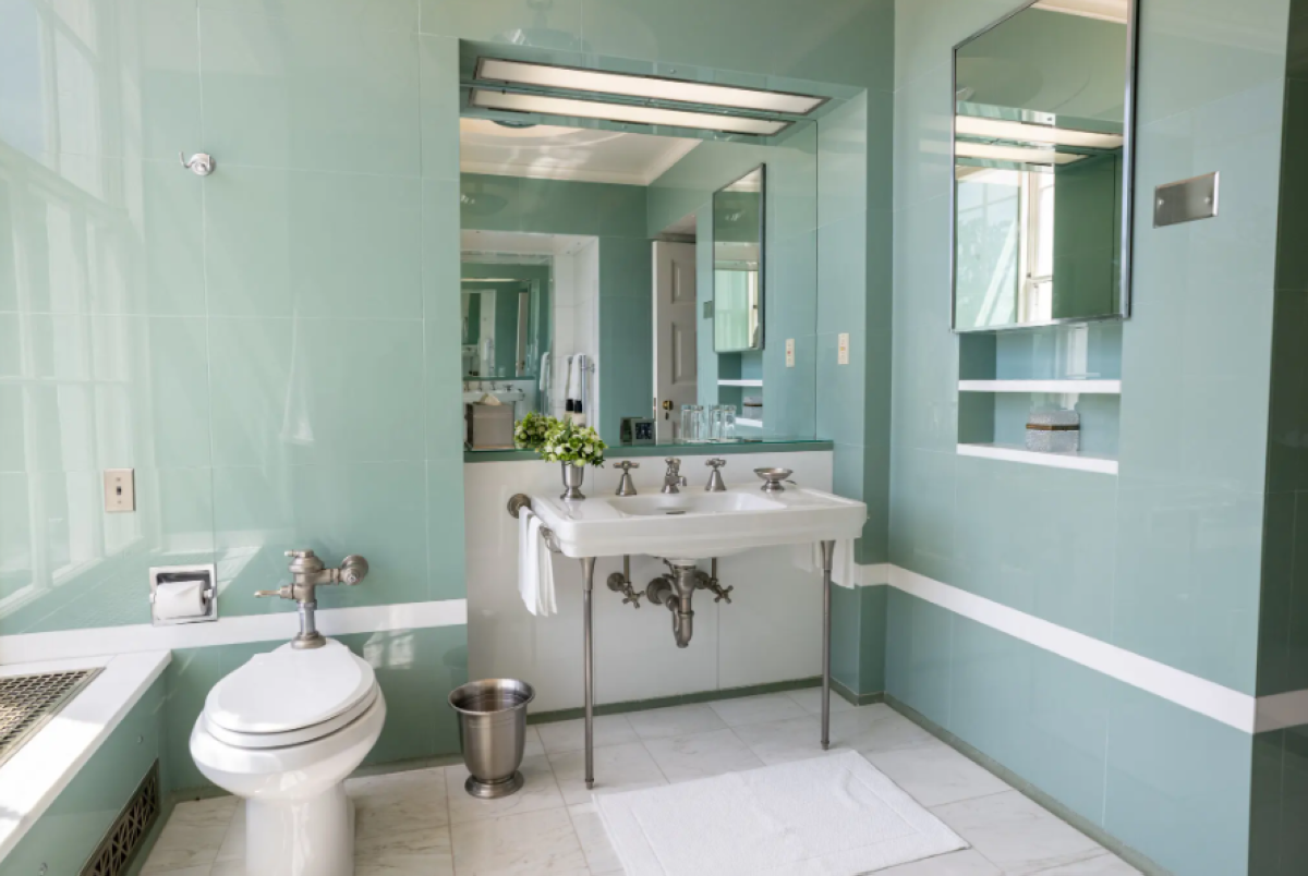 ووفقا لمقال نشرته صحيفة واشنطن بوست في عام 2007، يعود تاريخ حمام لينكولن المكسو بالبلاط الأخضر إلى عملية تجديد في الخمسينيات أجراها الرئيس الأمريكي آنذاك هاري ترومان.