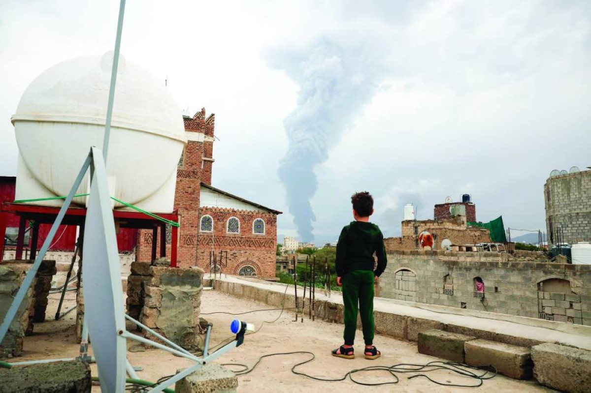 طفل ينظر إلى الدخان المتصاعد إثر غارات إسرائيلية على صنعاء