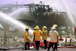 اوقف انفجار هو الأعنف في تاريخها العمل في مصفاة الاحمدي بالكويت وادى الى سقوط سبعة قتلى بينهم كويتي و51 جريحاً, واسفر عن الحاق اضرار مادية فادحة, كادت تصل الى حد التدمير الكامل لمنشآت المصفاة, فيما تواصل فرق الانقاذ البحث عن المفقودين الذين حددت التقديرات الاولية عددهم 16 مفقوداً ، مع استبعاد اية شبهات لوجود عمل تخريبي وتأكيد ان الانفجار ناتج من تسرب غازي. وقال المساعد التنفيذي لعمليات التصنيع في شركة البترول الوطنية محمد الطويل خلال مؤتمر صحفى ان الشركة اعلنت حالة الطوارىء من الدرجة الثالثة وهي تعتبر أعلى حالات الطوارىء. وذكر الطويل ان العمل قد توقف بجميع وحدات المصفاة بمصنع الغاز وجاري العمل حاليا منذ ساعة ونصف لاعادة تشغيل وحدات ضخ الغاز لتوفير منتجات الغاز للسوق المحلية. ولم يحدد المسئول النفطى موعد اعادة تشغيل مصفاة الاحمدى التى اوقف العمل فيها جراء الانفجار. واوضح ان معظم الاصابات كانت بسبب تطاير شظايا الزجاج من المباني المجاورة ومن مبنى الشركة. وجاء في المؤتمر الصحفي الذى عقده مسئولون في شركة البترول الوطنية انه تم اتخاذ كافة الاحتياطات والاجراءات لمنع امتداد الحريق لمناطق مجاورة وذلك بعد اكتشاف التسرب في احد خطوط الغاز في مصفاة ميناء الاحمدى ومحاولة ايقافه. واضاف المسئولون انه قد تمت السيطرة على الحريق الذى لم يخمد نهائيا لاسباب فنية. وتواجد في موقع الحادث منذ الصباح النائب الاول لرئيس مجلس الوزراء وزير الخارجية الشيخ صباح الاحمد الصباح ووزير النفط الشيخ سعود ناصر الصباح ومحافظ الاحمدى الشيخ على عبدالله السالم الصباح. وكان الانفجار الذى نتج عن تسرب غاز في احدى انابيب نقل الغاز قد وقع في احدى وحدات مصفاة الاحمدى القديمة عند الساعة 4.24 بالتوقيت المحلى (1.24 بتوقيت جرينتش) واثناء محاولات السيطرة عليه وقع انفجار كبير ادى الى وقوع اصابات واضرار مادية. وقد هرعت فرق الاطفاء والدفاع المدنى للسيطرة على تبعات الانفجار. من جهته, اكد محافظ محافظة الاحمدي الشيخ علي الصباح ان الحريق الناتج عن انفجار احد انابيب الغاز في مصفاة ميناء الاحمدي تمت السيطرة عليه ولن يكون للانفجار اي تأثير على المناطق المجاورة. وقال المحافظ في تصريح صحفي من موقع الحادث لا بد وان يكون في الحسبان توقع حدوث حوادث في المنشآت الصناعية الضخمة وفي مصافي النفط في اي مكان في العالم. واوضح ان جهود فرق الاطفاء في محافظة الاحمدي وشركة نفط الكويت وشركة البترول الوطنية ادت الى السيطرة على الحادث بعد مرور وقت قصير من وقوعه. وطمأن المحافظ سكان محافظة الاحمدي بقوله لا توجد اي اخطار او آثار ضارة للانفجار تمكنها من الوصول الى المناطق المجاورة. واشارت مصادر مطلعة ان المساحة التي شملتها اضرار الانفجار بلغ قطرها 5 كلم, فيما نفى بيان لشركة البترول الوطنية الكويتية امس ان يكون ما حدث في مصفاة ميناء الاحمدي ناتج عن عمل تخريبي وأكد انه ناتج عن تسرب غازي وانه تمت السيطرة على الموقع بالكامل, وان محطات الكهرباء لم تتأثر حيث ان عملية تزويدها بالوقود اللازم من المصفاة لم تتوقف. واضاف البيان ان متطلبات السوق المحلي من البنزين والغاز المسال ووقود الطائرات لم تتأثر ايضاً نظراً لتوفر احتياطي في المصفاة كما ان مصفاتي الشعيبة وميناء عبدالله تعملان بكامل طاقتيهما التشغيلية. من جهة اخرى, ما زال الدخان الاسود الكثيف يتصاعد على شكل كتل ضخمة من وحدة انتاج البنزين التي تحيطها وحدات التكرير وفصل الغاز واسترجاع الغاز شبه المدمرة بفعل الانفجار الذي وقع في مصفاة الاحمدي فجر امس. وذكر احد كبار مسئولي شركة البترول الوطنية ان الانفجار يعد الاعنف في تاريخ المصفاة. وبدت الانابيب المتداخلة كالدهاليز التي اصابها الوهن واتكأ بعضها على بعض فيما غطى الركام بعضها الآخر ولم يسمح سوى لرجال الاطفاء بملابسهم الحمراء والزرقاء الاقتراب من المنشآت المدمرة في الوقت الذي كانت المياه تندفع بقوة من الخراطيم لتغطي كامل المنطقة شبه المربعة ال
