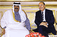 استقبل الرئيس الفرنسي جاك شيراك امس الشيخ حمد بن خليفة آل ثاني امير قطر الذي يزور فرنسا حاليا. وذكرت وكالة الانباء القطرية الرسمية انه تم خلال الاجتماع بقصر الاليزيه, استعراض العلاقات الثنائية بين قطر وفرنسا اضافة إلى اخر المستجدات على الساحتين العربية والدولية وبخاصة تطورات الاوضاع في الاراضي الفلسطينية. حضر المقابلة الشيخ حمد بن جاسم بن جبر آل ثاني وزير الخارجية, ويوسف حسين كمال وزير المالية والاقتصاد والتجارة, والشيخ عبدالله بن محمد بن سعود آل ثاني مدير مكتب امير قطر والشيخ حمد بن ثامر آل ثاني رئيس مجلس إدارة الهيئة العامة للاذاعة والتلفزيون, وخميس السحوتي القائم بأعمال سفارة دولة قطر لدى باريس.