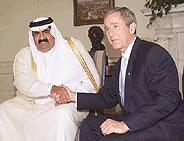 خلال زيارته لأمريكا، التقى أمير قطر الشيخ حمد بن خليفة أمس الأول الرئيس الامريكي جورج بوش ووفداً من اعضاء الكونجرس حيث تم التباحث حول تعزيز العلاقات اضافة لبحث المستجدات عقب الاعتداءات الارهابية على الولايات المتحدة وخطط واشنطن لمكافحة الارهاب، فيما اعلنت الدوحة ان مجابهة الارهاب تحتاج لوضع خطط عالمية شاملة مشيرة الى ان الامم المتحدة تعد الاطار المناسب لذلك الأمر. واستعرض الشيخ حمد وبوش اهمية القضاء على الارهاب وحل اسبابه وضرورة الفصل بينه وبين الاسلام.كما تم استعراض الاوضاع في الاراضي العربية وتطورات عملية السلام بالاضافة الى عدد من الموضوعات المتصلة بتفعيل التعاون المتنامي بين البلدين.وناقش الشيخ حمد مع وفد من اعضاء الكونجرس الامريكي بمجلس الشيوخ العلاقات المتنامية بين البلدين والسبل الكفيلة بدعمها وتطويرها في مختلف المجالات اضافة للمستجدات الراهنة وخطط واشنطن لمواجهة الارهاب. الوكالات