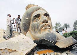 وأضاف «لم يكن هناك لحظة الانفجار وجود لجنود أميركيين أو قوات من الشرطة والجيش العراقيين». والتمثال عبارة عن رأس الخليفة العباسي من البرونز مرتديا عمامة ارتفاعه حوالي مترين صنعه النحات خالد الرحال، أحد أبرز رواد الحركة الفنية في العراق.