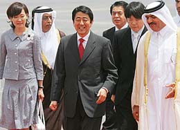 بحث رئيس الوزراء الياباني شينزو آبي مع أمير قطر الشيخ حمد بن خليفة آل ثاني ورئيس الوزراء وزير الخارجية الشيخ حمد بن جاسم آل ثاني فرص السلام في منطقة الشرق الأوسط، فضلاً عن تعزيز العلاقات الاقتصادية الثنائية بين اليابان وقطر ومزيد من التعاون في مجالات الغاز، حيث تعتبر قطر أكبر دولة عربية مصدرة للغاز الطبيعي إلى اليابان التي استوردت أكثر من 5,10 مليارات دولار من المنتجات القطرية في العام 2005.