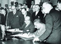 وانتهت المحادثات إلى إعلان الوحدة رسمياً، والتوقيع عليها في يوم السبت الأول من فبراير سنة 1958، والمبادئ التي تقوم عليها هي: