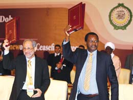وقعت الحكومة السودانية في الدوحة أمس اتفاقاً إطارياً للسلام مع «حركة التحرير والعدالة» المتمردة في إقليم دارفور يتضمن وقف إطلاق النار مدة 3 شهور والمباشرة في مفاوضات السلام، وجاء الاتفاق الجديد بعد أسابيع من توقيع اتفاق مماثل مع «حركة العدل والمساواة»، فيما أعلنت قطر عن إنشاء «بنك تنمية وإعمار دارفور» برأسمال قدره مليارا دولار لدفع التنمية في الإقليم.