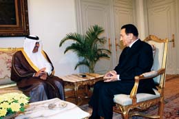 وبحث مبارك في القاهرة أمس مع رئيس الوزراء ووزير الخارجية القطري الشيخ حمد بن جاسم بن جبر آل ثاني «آخر التطورات العربية والإقليمية، والعلاقات الثنائية المتنامية بين البلدين، بما في ذلك مجالات الاقتصاد والتجارة والاستثمار والطاقة».