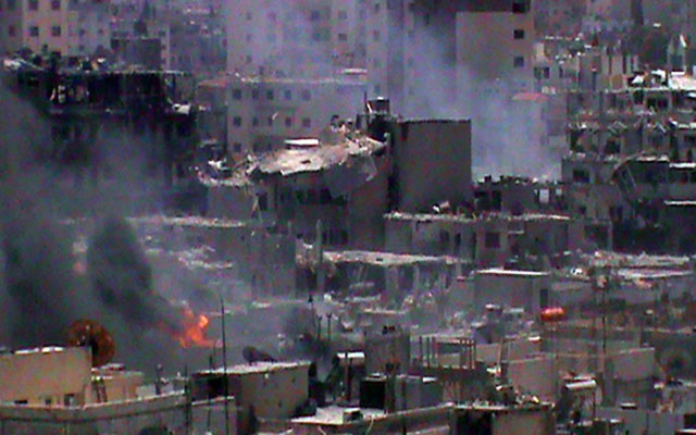 وذكر المرصد أن بلدات بساتين دير العصافير وبزينة وبساتين بلدة زبدين تتعرض لقصف عنيف من القوات النظامية السورية «التي تستخدم راجمات الصواريخ مع تحليق للطائرات في سماء المنطقة».