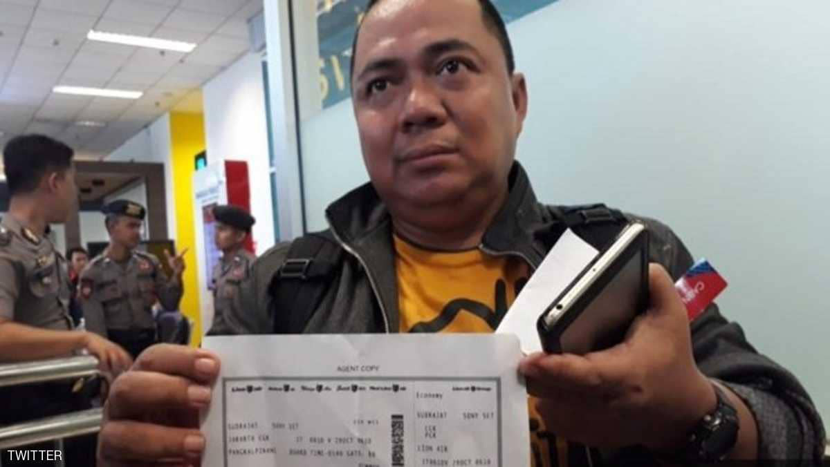 وكان من المفترض أن يكون المسافر "المحظوظ" على متن الطائرة المنكوبة، ولكن زحاما مروريا في العاصمة جاكرتا بالطريق إلى مطار سوقارنو هاتا الدولي منعه من الوصول في الموعد المحدد، وأنقذ حياته.