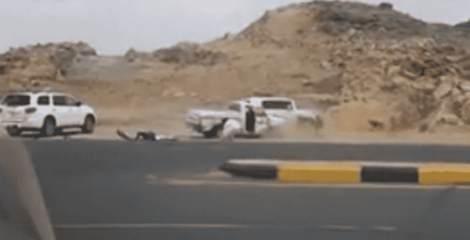 وبيّنت مقاطع الفيديو الموثقة من أشخاص عدة مطاردة بين مركبتين، إحداهما "جيب"، والثانية "هايلوكس"، بأحد الشوارع، وقام قائد المركبة "الجيب" بملاحقة قائد الهايلوكس، وتعمد صدمه بالقوة، وانحراف سيارته وتوقفها بحسب صحيفة سبق.