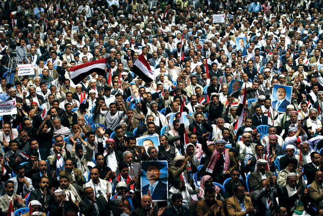 جدد الرئيس اليمني علي عبدالله صالح دعوة المعارضة للحوار أمام الآلاف من انصاره واعلن أسفه لاحداث العنف في بلاده فيما واصل الآلاف التظاهر في بلاده للمطالبة برحيله عن الحكم في كل من صنعاء وتعز وعدن وإب.