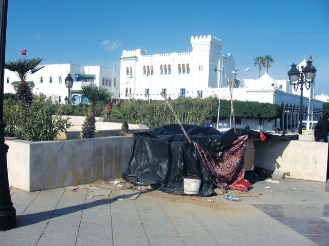 أصبحت ساحة القصبة في تونس ملاذا للمظلومين والمطالبين بحقوقهم السياسية والاجتماعية. لعبت تلك الساحة دورا مهما في ثورة تونس التي أطاحت بالرئيس المخلوع في ‬14 يناير الماضي. فبمجرد أن تتجول في الساحة حتى تستوقفك تلك الخيم الرثة التي أصبحت مقر سكن العديد من العائلات، إلا أن كل المتواجدين يصرون على الاعتصام هناك إلى أن تجد لهم الحكومة مخرجا لمشاكلهم المتنوعة. البداية كانت مع نسرين خبوشي وهي حلاقة كانت تعمل في ليبيا ومعتصمة في باحة القصبة منذ ‬15 يوما برفقة شقيقتها كوثر وأبنها الصغير محمد.