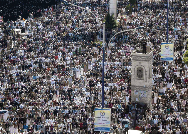 في غضون ذلك، يواصل عشرات الالاف من المحتجين اليمنيين زحفهم على العاصمة صنعاء لاعلان رفضهم منح الرئيس علي عبد الله صالح اي حصانة من الملاحقة القضائية، فيما انتشر عشرات من المسلحين وقوات مكافحة الشغب في المدخل الجنوبي للمدينة . وقال المحامي توفيق الشعبي لـ« البيان»عبر الهاتف وصلنا مدينة معبر شمال مدينة ذمار وسنواصل السير حتى منطقة نقيل يسلح حيث سنبيت هناك قبل ان نواصل صباح السبت السير الى صنعاء.