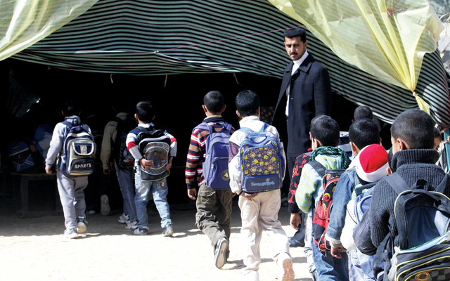 شقاء (رويترز)تلاميذ عراقيون يصطفون لدخول خيمة نصبتها محافظة كربلاء لتعويض النقص الحاد في عدد المباني المدرسية في عموم محافظات العراق.