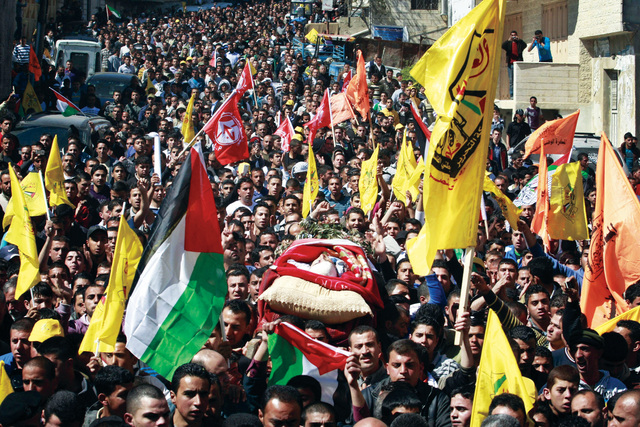 تشييع أ.بالفلسطينيون يشيعون جثمان زكريا أبو عرام الذي استشهد برصاص إسرائيلي أول من أمس في بلدة يطا بالقرب من الخليل .