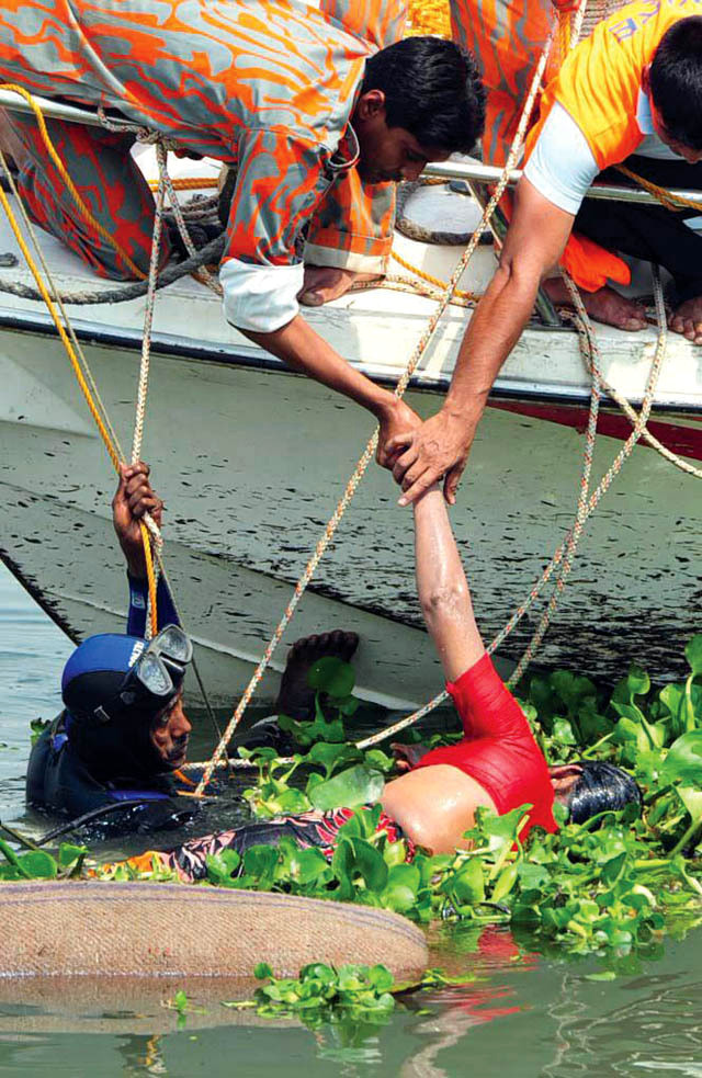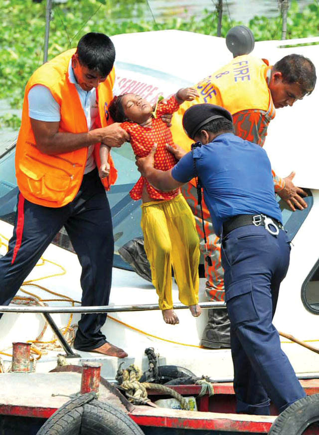 حادث (أ ف ب)عمال إنقاذ خلال انتشالهم جثة طفل، غرق في حادث اصطدام عبارة ليل الثلاثاء، بناقلة نفط صغيرة في بنغلادش، ما أدى إلى مصرع 32 مسافراً على الأقل، واعتبر عشرات في عداد المفقودين، وتحدثت السلطات المحلية عن نجاة 35 فقط.