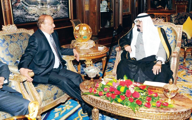 واستقبل الملك عبدالله بن عبدالعزيز في قصره بالرياض مساء أمس الرئيس هادي، وقالت وكالة الأنباء السعودية انه جرى خلال الاستقبال بحث الأوضاع الراهنة في اليمن إضافة إلى آفاق التعاون بين الرياض وصنعاء وسبل دعمها وتعزيزها في جميع المجالات، كما جرى بحث مجمل الأحداث على الساحتين الإقليمية والدولية.