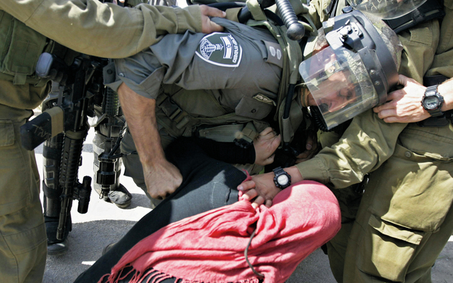 .. وحشية ا.بجنود إسرائيليون يعتدون بوحشية على امرأة فلسطينية خلال تظاهرة للتنديد بتوسيع مستوطنة قرب قرية النبي صالح في الضفة ()