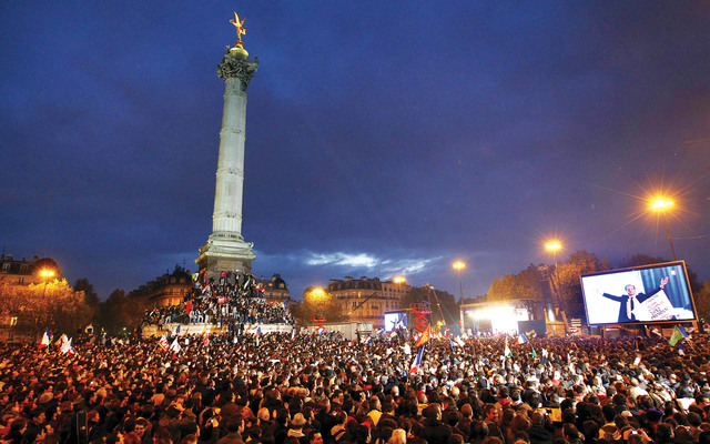 وقال هولاند، وقد بدا عليه التعب، خلال مخاطبته عشرات الآلاف من أنصاره: «تذكروا كل حياتكم هذا التجمع الكبير في ساحة الباستيل، لأنه سيحفّز كذلك شعوباً أخرى في أوروبا على التغيير»، متعهداً بـ«الانتهاء من التقشف»، مردفاً القول إنه «في كل العواصم، أبعد من رؤساء الحكومات والدول، هناك شعوب بفضلنا تأمل، تتطلع إلينا وتريد منا الانتهاء من التقشف»، واصفاً نفسه بـ«رئيس الشباب في فرنسا».