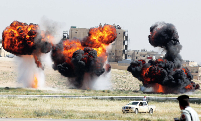 قوات خاصة (أ.ف.ب)تفجيرات ضخمة خلال استعراض للقوات الخاصة الأردنية في انطلاق معرض «سوفكس 2012» الذي افتتحه الملك عبدالله الثاني في العاصمة عمان أمس