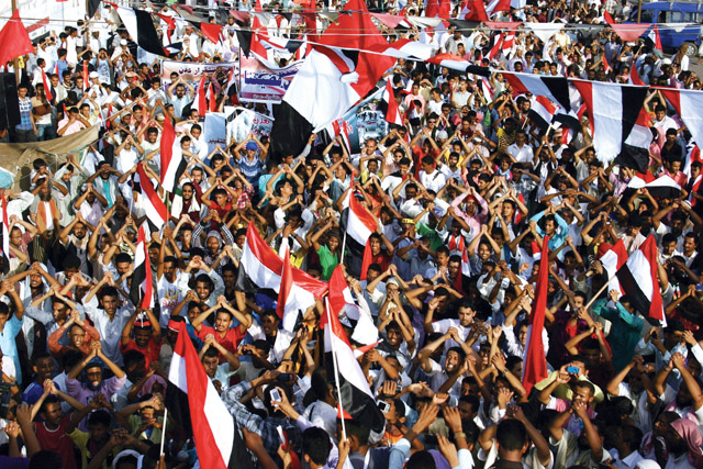 بعد يوم من التفجير الانتحاري الدامي والذي أودى بحياة 100 جندي يمني وإصابة 300 غطى الوجوم وملامح الحداد على احتفالات اليمنيين أمس بذكرى الوحدة بين شطريه، وسط تأكيدات رسمية بمواصلة الحرب على تنظيم القاعدة إلى حين القضاء عليه. بالتزامن مع بروز ملامح تحدٍ جديد من أقارب الرئيس اليمني السابق علي عبدالله صالح سلطات الرئيس عبدربّه منصور هادي والوعيد الدولي بفرض عقوبات عليهم، إذ تمردوا على قرارات الرئيس ورفضوا قرارات عزلهم من المواقع الأمنية الحسّاسة.