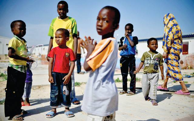 لاجئون (إي.بي.إيه)أطفال في مخيم اللاجئين بضواحي العاصمة الليبية طرابلس، يعتقد أن أهاليهم من أتباع نظام العقيد الراحل معمر القذافي بعدما فروا من مدينتهم (توارقة الواقعة جنوب مصراتة)، وهم ينتظرون لحظة العودة إلى ديارهم.