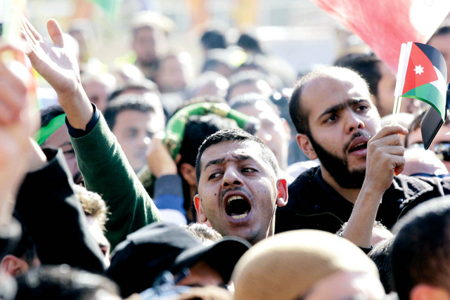 فشلت أمس، الجبهة الوطنية للإصلاح، المعارضة في الأردن في تأمين حشد كبير لمسيرة «الانتفاضة الشعبية» التي دعت إليها، للاحتجاج على الغلاء، والمطالبة بالإصلاح في البلاد. وقدرت جهات رسمية وأخرى مستقلة أن القائمين على المسيرة لم يستطيعوا أن يحشدوا سوى ألفين إلى ثلاثة آلاف شخص. وكشف رئيس الجبهة، أحمد عبيدات، خرق المسيرة من شباب قرى نائية، وأطلقوا شعارات خرقت الخطوط الحمراء، تبرأ منها.