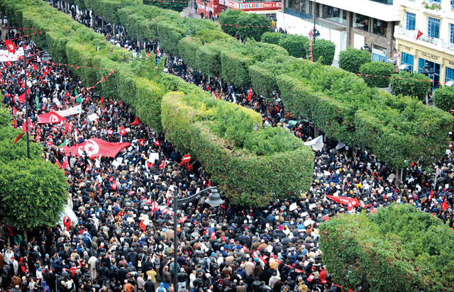 وتظاهر أكثر من ثلاثة آلاف من أنصار حركة النهضة في شارع الحبيب بورقيبة الرئيسي وسط العاصمة بدعوة من الحركة دفاعا عن «شرعية الحكم» ولادانة «التدخل الفرنسي» في الشؤون التونسية.
