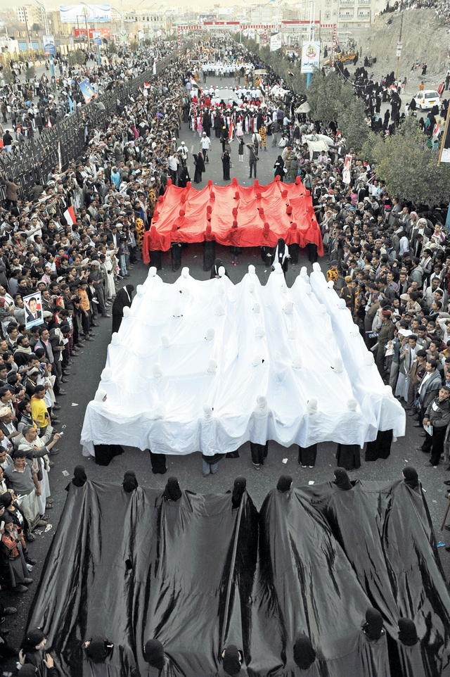 تظاهر المئات من الناشطين والشباب في اليمن أمس للمطالبة بإسقاط الحكومة في خطوة هي الأولى منذ إسقاط نظام حكم الرئيس السابق علي عبدالله صالح بعد ان اتهموها بالفشل في تحقيق اهداف الثورة واهمال الجرحى، كما طالبوا برحيل نجل الرئيس السابق أحمد علي عبدالله صالح واللواء علي محسن الأحمر عن قيادة قوات الحرس الجمهوري وقوات الفرقة الاولى مدرع.. فيما تسلّمت اللجنة الفنية للحوار الوطني قائمة محاوري أحزاب اللقاء المشترك وحزب المؤتمر الشعبي وجماعة الحوثي.. فيما تتجه الأنظار نحو القائمة التي سيسمّيها الرئيس.