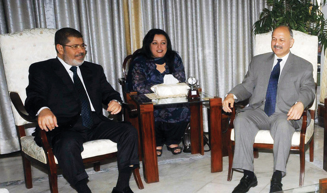 وكان مرسي وزرداري عقدا اجتماعا ثنائيا بمقر الرئاسة الباكستانية، أعقبه جلسة مباحثات موسعة ضمت وزراء من الجانبين.