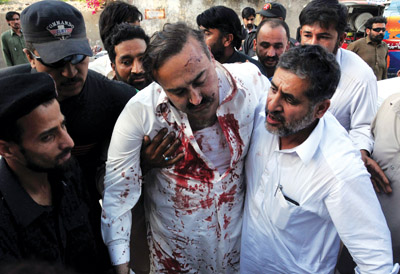 وأفادت وسائل إعلام باكستانية أن عبوة ناسفة بدائية الصنع انفجرت بالقرب من سيارة القيادي في حزب عوامي الوطني ومسؤول لجنة السلام في مانغلاوار مكرّم شاه. كما أصيب مرشّح الحزب، سيّد معصوم شاه، وجُرح 3 أشخاص آخرين بانفجار قنبلة فجّرت عن بعد أثناء عودته من تجمّع انتخابي نظّم في قرية كاتوزاي في مدينة شاراسادا. أ.ف.ب