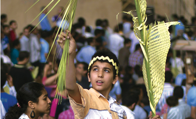 طفل قبطي في مصر يحمل سعفة النخيل خلال احتفالات الأقباط بأسبوع الآلام.