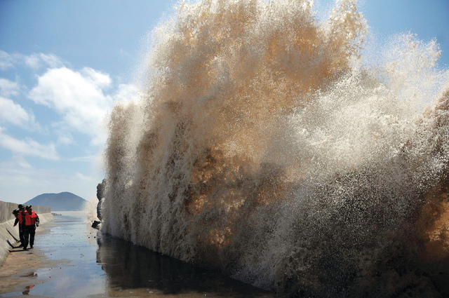 أمواج أ.ف.بأمواج ضخمة على شاطئ ميناء الصيادين في مدينة ولنغ شرق الصين، حيث أجلت السلطات نحو نصف مليون شخص أمس تحسباً لإعصار «سوليك»، الذي يتوقع أن يتسبب في هطول أمطار غزيرة على تلك المناطق.