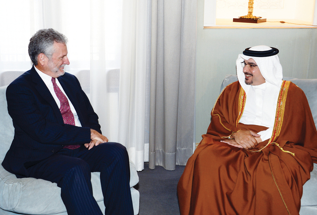 واستعرض الأمير حمد خلال اللقاء مع السفير الأميركي عددا من التطورات والمستجدات على الساحتين الإقليمية والدولية .