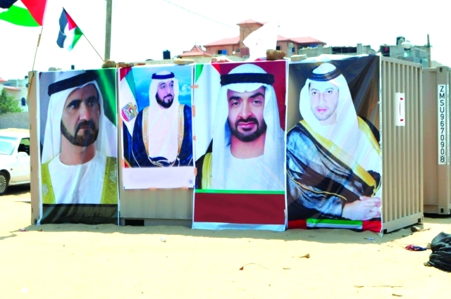 وما إن تدخل المنطقة وتشاهد خيامه المتناسقة حول بعضها البعض، يخيل لك للوهلة الأولى بأنك أمام مخيم كشفي.. حركة دؤوبة وأناس يدخلون وآخرون يخرجون، وسيارات على جنبات المكان وعلم دولة الامارات يرفرف خفاقا إلى جانب العلم الفلسطيني، وصور عديدة رفعت لرموز دولة الإمارات وقياداتها التي ما بخلت على الشعب الفلسطيني في شيء على مدى العقود الماضية.